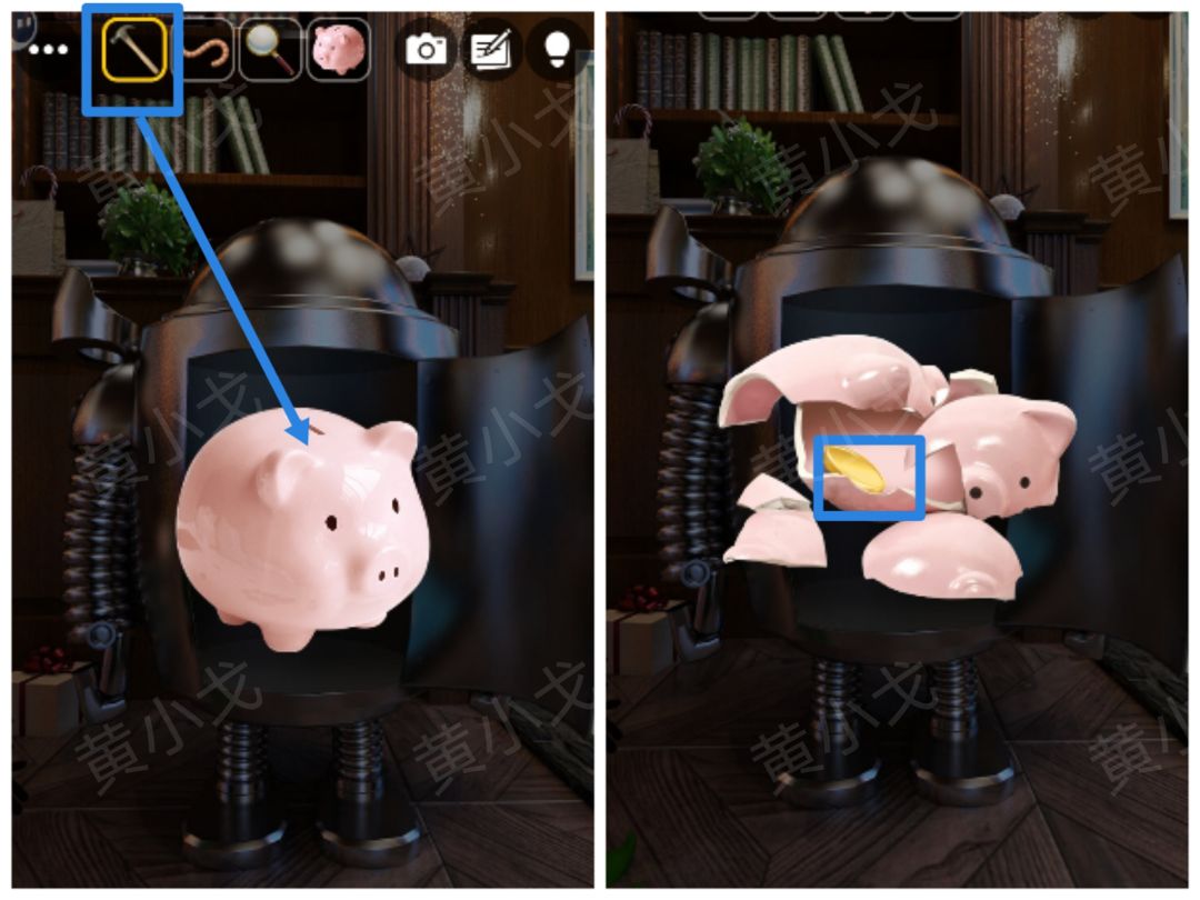 4.用【锤子】砸开【存钱罐】,获得【硬币】