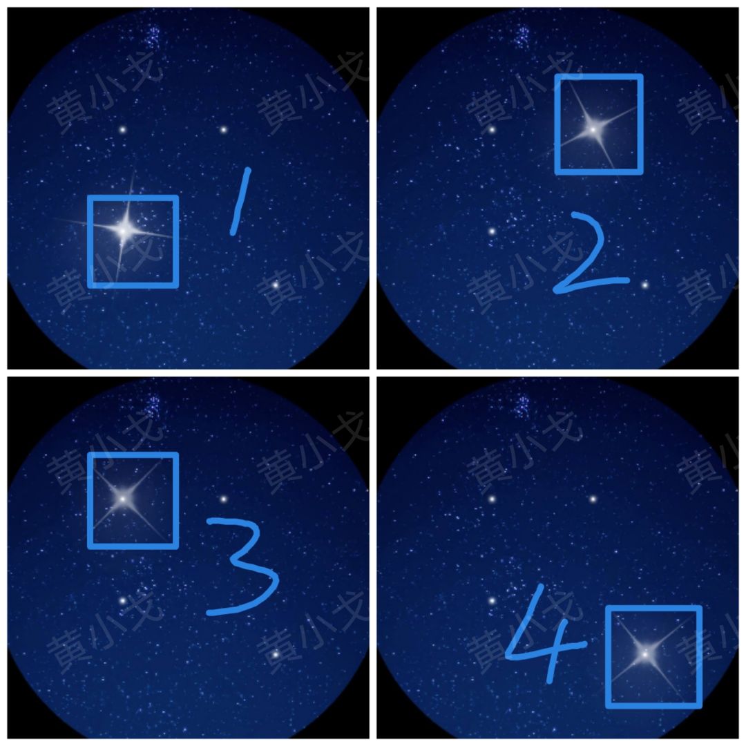 🔶星星闪烁的位置及顺序:左下、右上、左上、右下