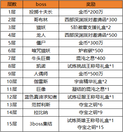 试炼之塔通关奖励是非常丰厚的,它的奖励是会重置的,一般每期的参与时间在20~30天左右,在此期间只要我们将每层通关一次,即可获得所有奖励,想要拿取高额奖励的玩家,一定不要错过这个玩法!