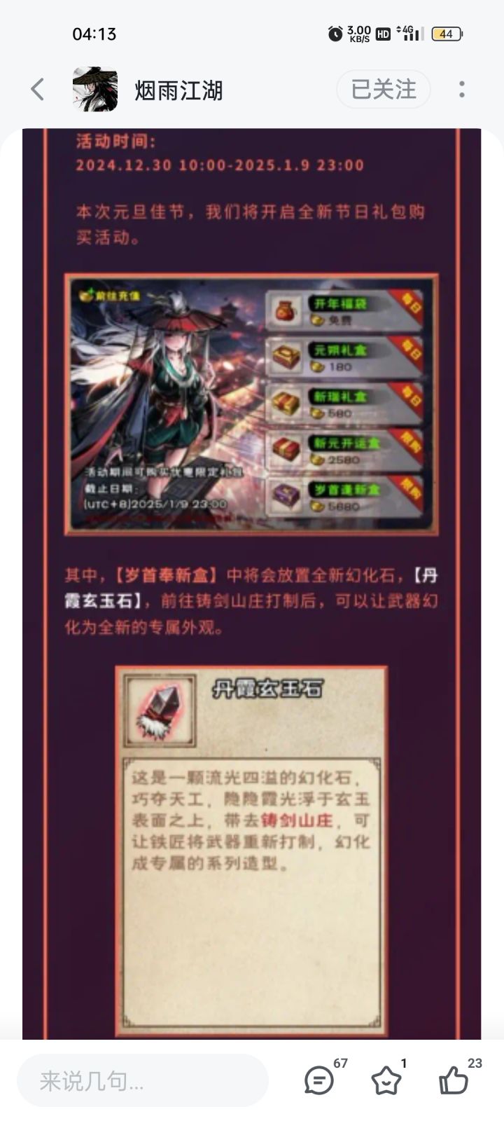 烟雨江湖12月更新大爆料来了~~