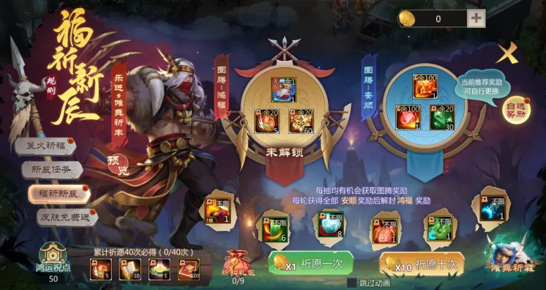 图腾奖励分为鸿福和安顺两档,其中图腾*鸿福内有无双奖励,超帅气新款乐进封灵玉*傩舞祈丰等你带走!!