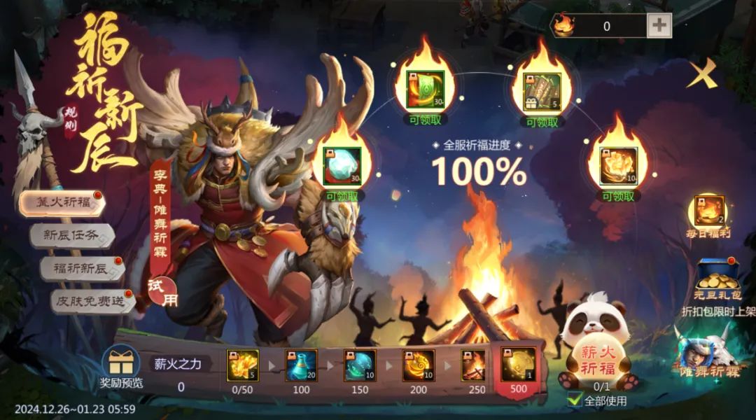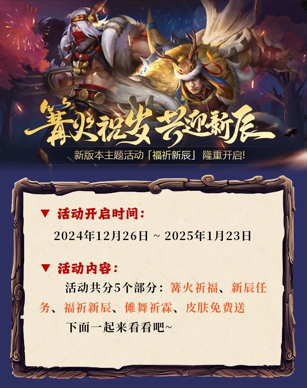 皮肤免费送!篝火祝岁,共迎新辰,主题活动「福祈新辰」隆重开启