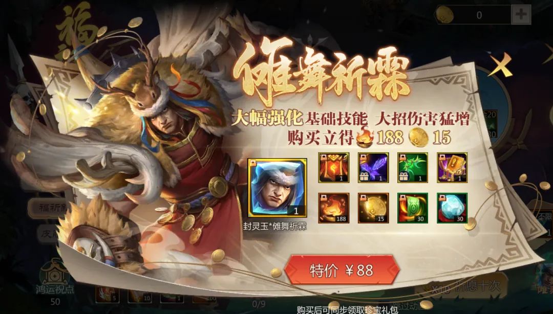购买李典封灵玉【傩舞祈霖】礼包,立得薪火*188、福舞钱*15,还送稀有称号*福祈新辰、缘聚江南坐翅甄选、缘聚江南武器甄选、缘聚江南镶嵌卡册和大量幸运石、守护卡哦!