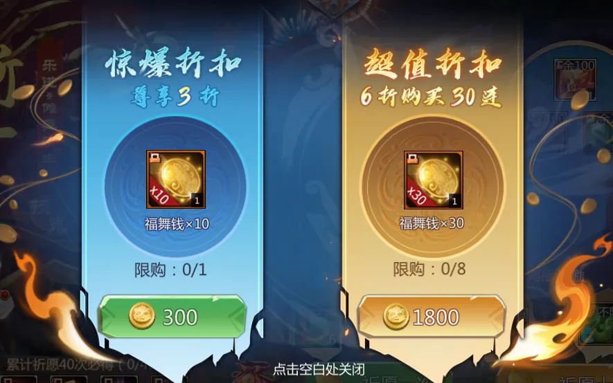福舞钱限购折扣礼包上架!超优惠3折限购1次的福舞钱10连、6折限购8次的福舞钱30连抽,助力仙术师一发入魂出无双大奖!