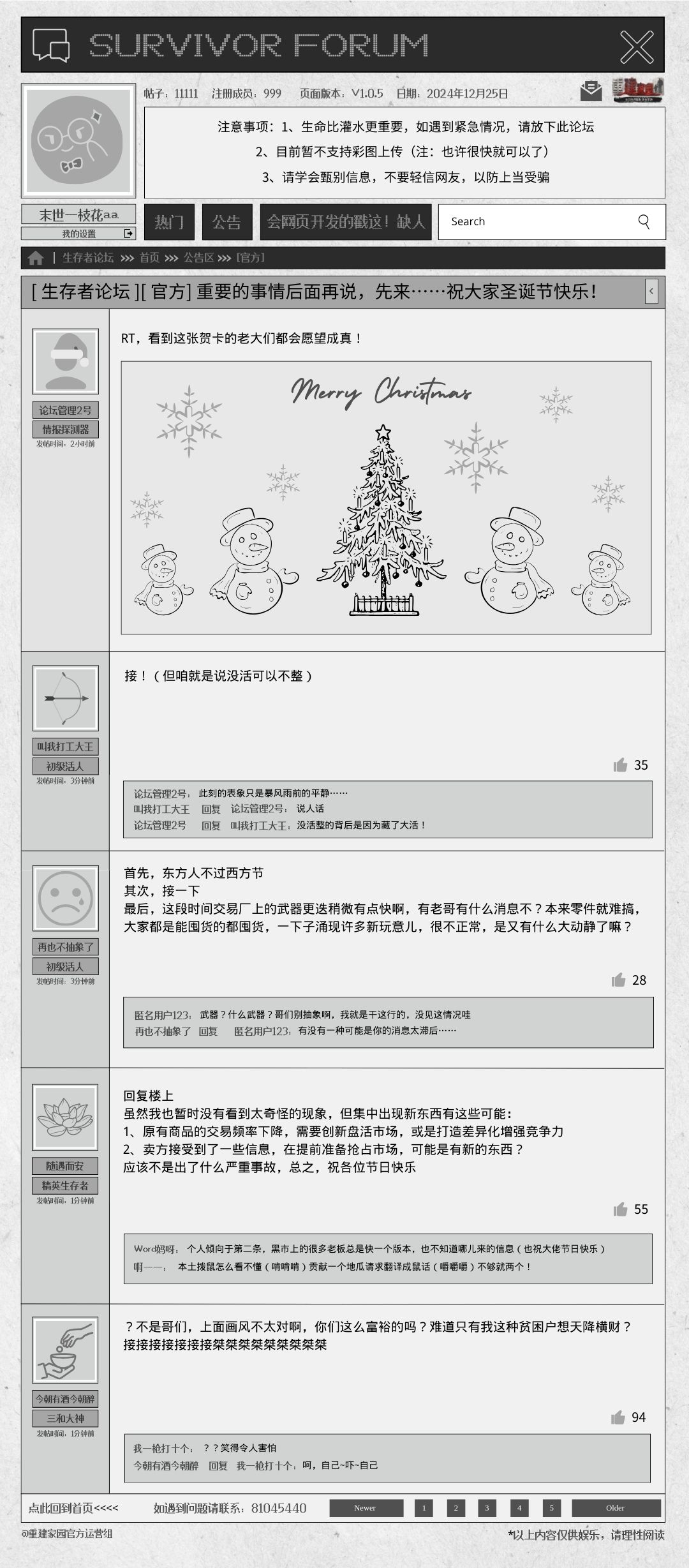 将有5个幸存者获得由圣诞老人送出的奖励一份(🎁:破旧书籍*10)