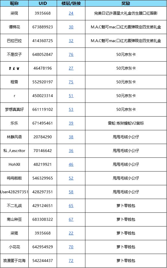 让我们一起恭喜下方获奖的小伙伴,没获奖的小伙伴不要灰心,萝萝山还有更多福利活动等着你!