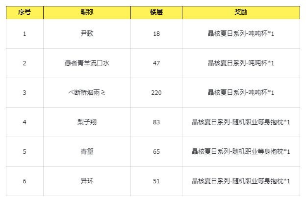 恭喜以下幸运的冒险者获得活动奖励,请中奖的冒险者添加QQ发奖①群:672383967(已满)或②群:875420280登记相关获奖信息,超过7个工作日未登记视为放弃奖励。
