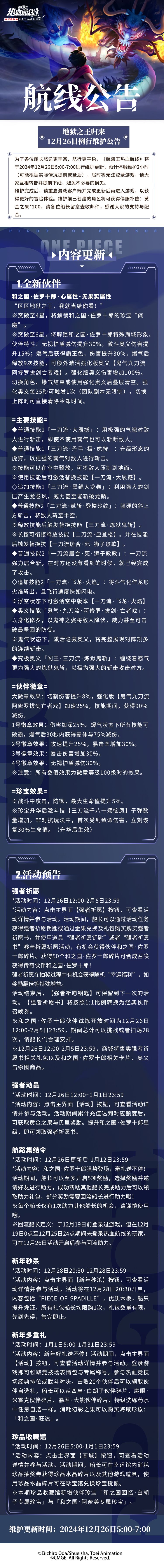 每周例行维护,和之国·佐罗十郎强势登场!玩法排位更迭,新年活动福利送不停!