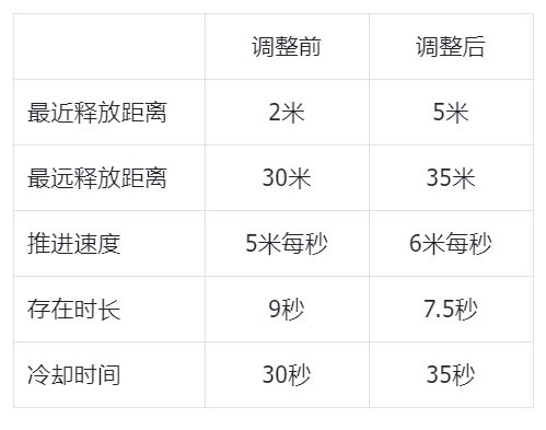 -战术技能【坚坚冰柱】的冷却时间由25秒调整为30秒;
