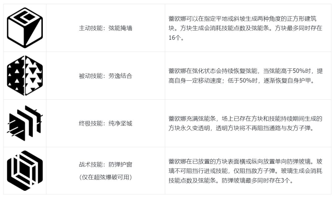 欧泊现有的「守护」定位超弦体都是以强化自身的区域作战能力为核心,考虑到玩法多样性的提升,项目组推出了首位不强调自身区域作战的封墙类守护型角色「蕾欧娜」,通过其出色的建造能力为友方提供良好的输出环境。