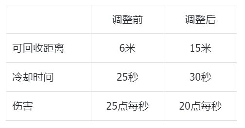 -战术技能【腐蚀溶液】的冷却时间由30秒调整为35秒;