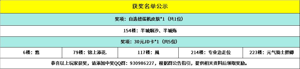 恭喜以下幸运的小骑士获得活动奖励,请中奖的小骑士添加获奖群:930986227,请加获奖群后,登记相关获奖信息,超过15个自然日未进群未登记视为放弃奖励~
