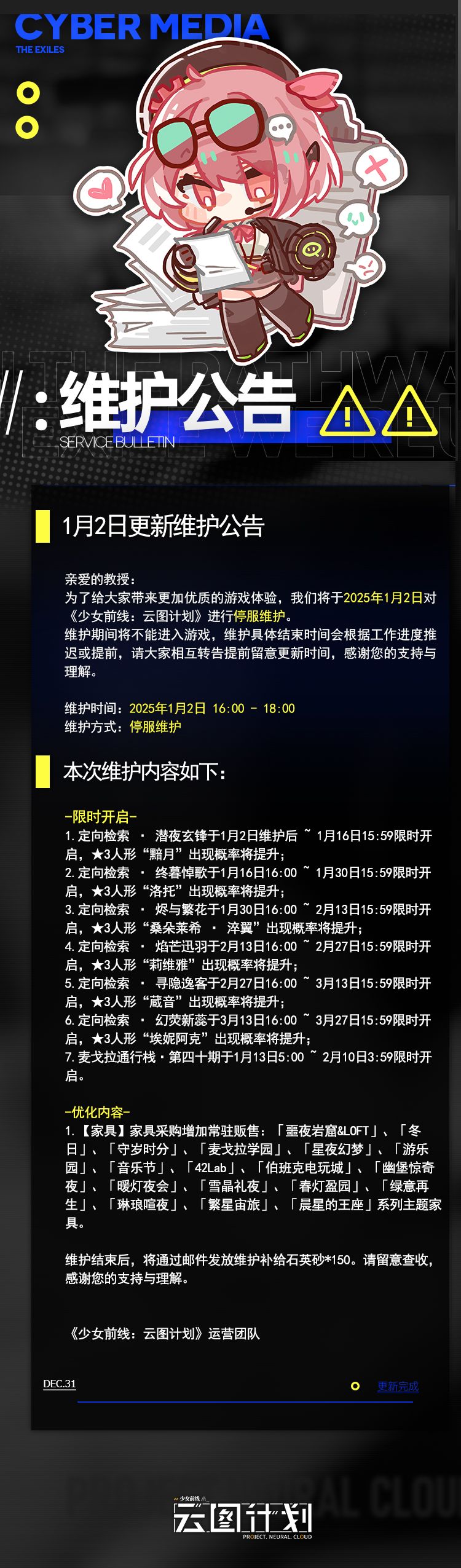 《少女前线:云图计划》1月2日更新维护公告
