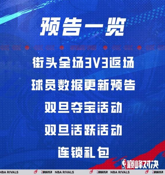 明天早上十点将新版本球员数据更新!!!我们根据NBA赛场实际情况以及球员最新数据,对游戏中现役球员的各维度能力数据进行了最新调整,同时也对部分球员进行了动作包的更新和优化,具体数据更新详情请以游戏内最终呈现为准。