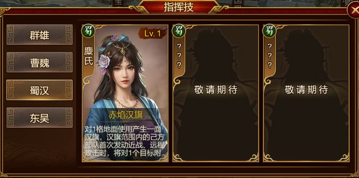 解锁方式:通过指挥技新手引导后,可在治所中选择【指挥技】-【蜀汉】-【麋氏】,完成解锁战斗后即可获得第五位指挥武将『麋氏』。