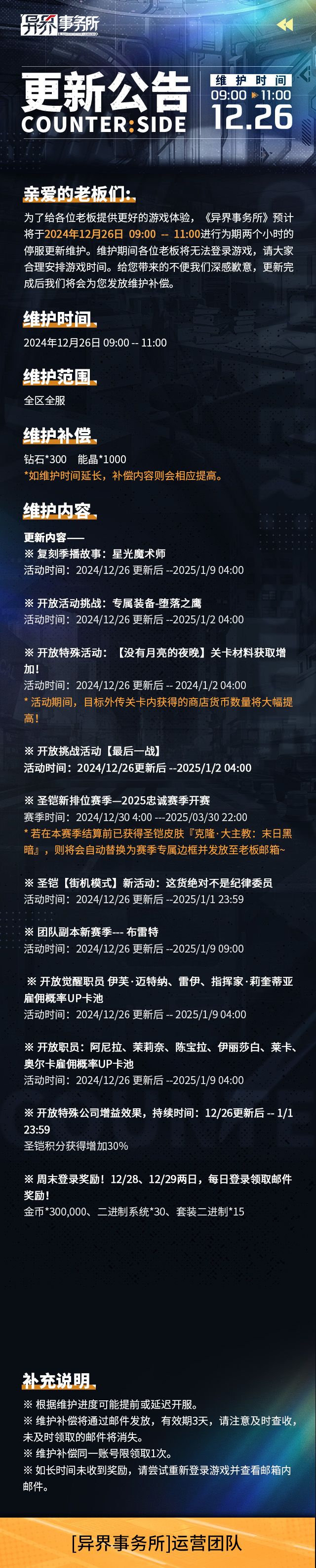 更新情报 | 季播故事复刻,觉醒职员伊芙、莉奎蒂亚等雇佣概率UP