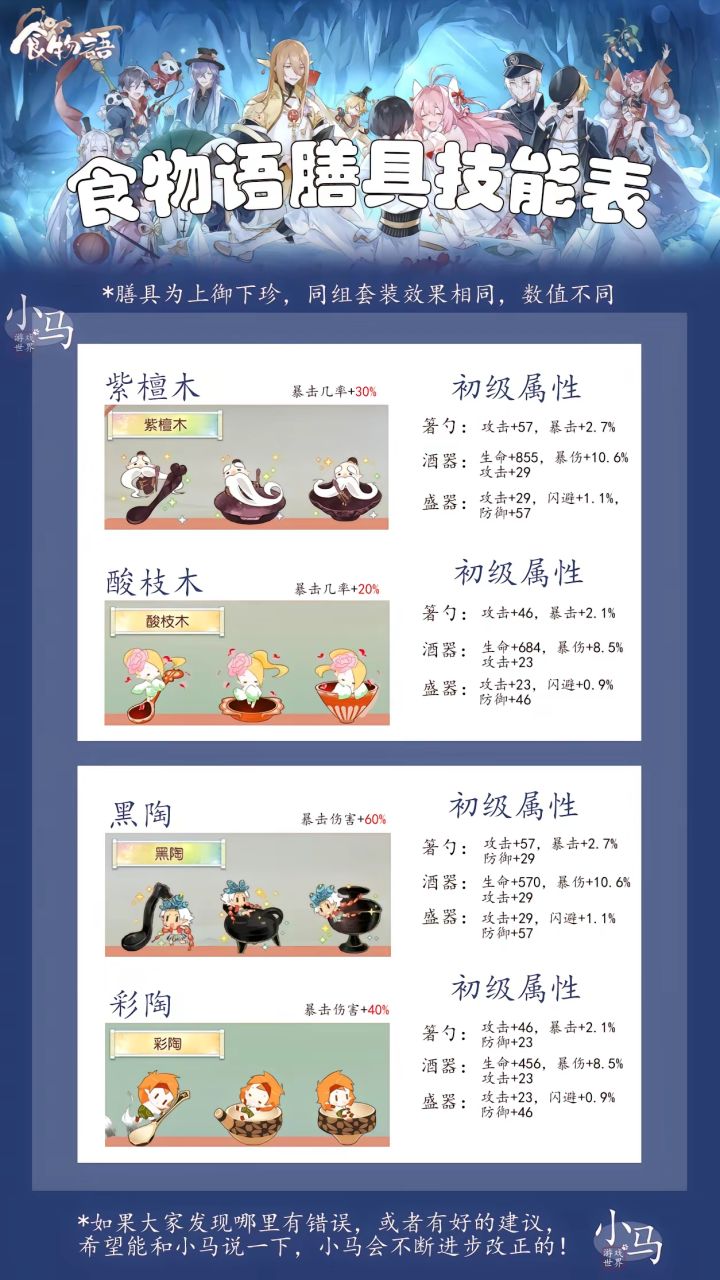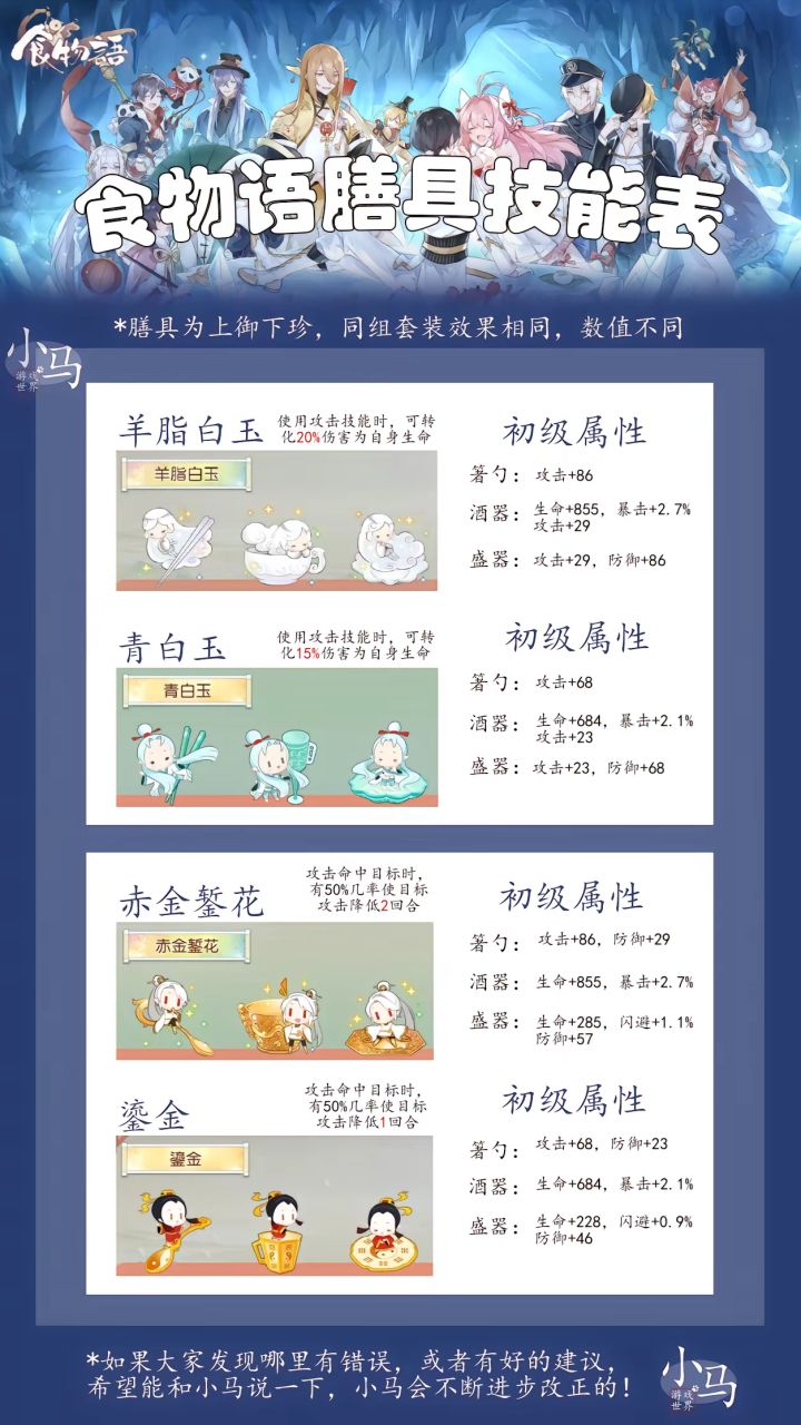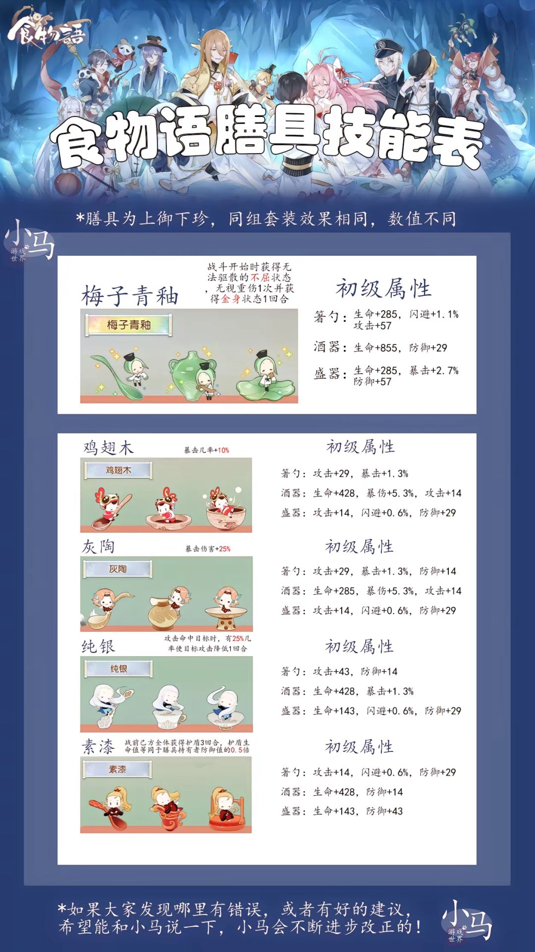 ‼️食物语‼️膳具技能表(珍御对照)(2)‼️