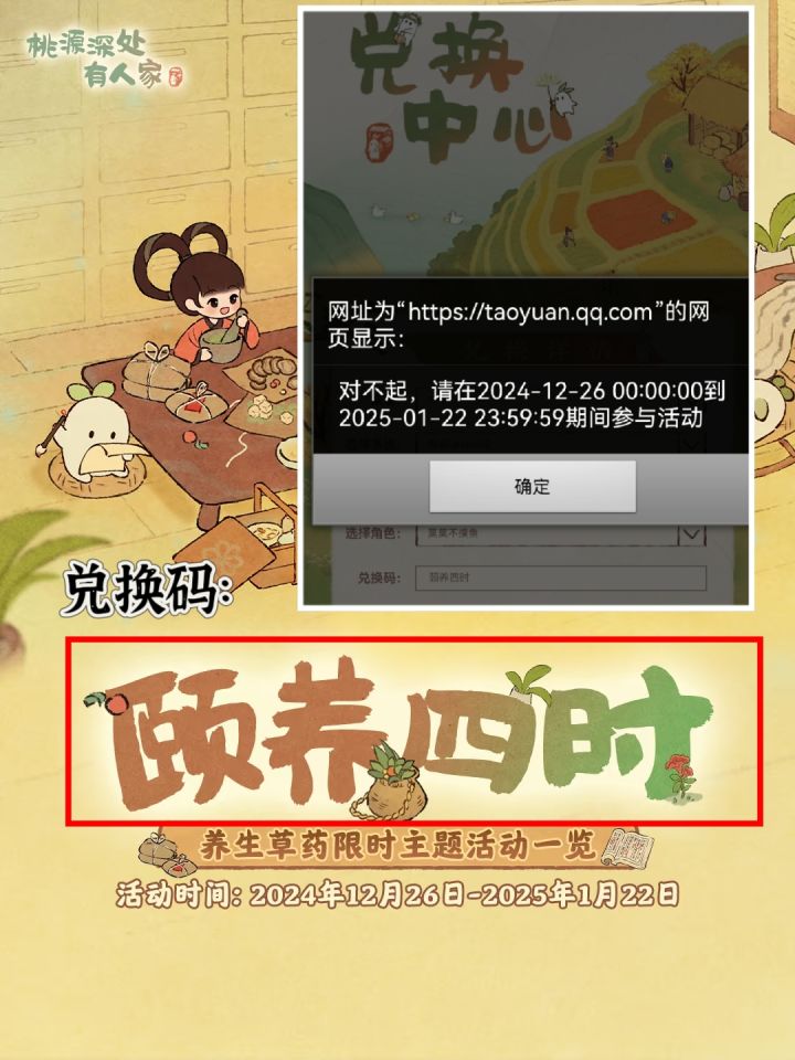 桃源最新兑换码「颐养四时」