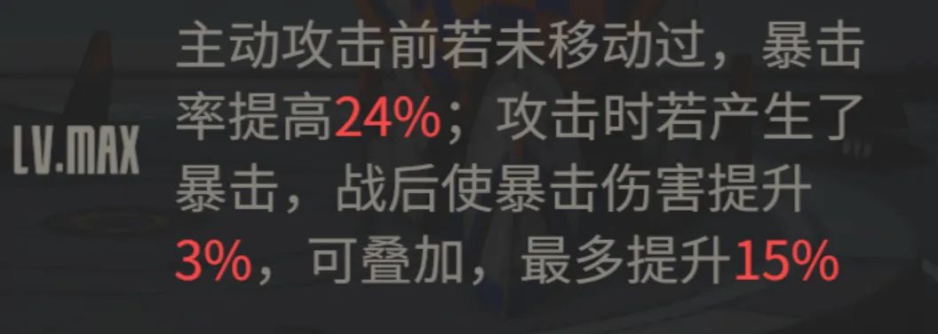 - “定向架起”后可具备超远的射程,并且通过定向架起回合结束后的暖机,还能进一步提升最大射程,最多提升2格