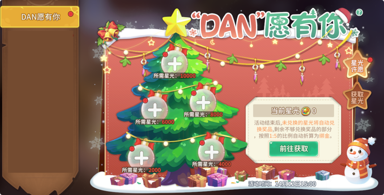 活动结束后,若星光度已达成而奖励未选择领取,会按照系统默认顺序(2024圣诞时装宝箱,道具仓库扩充券,重生果实专享礼盒,重生果实自选箱,绑定金贝)以【邮件】形式发放;