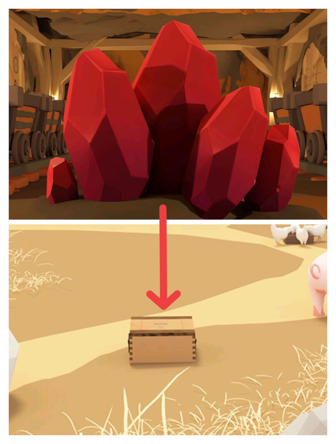 10.根据红色大矿石的形状可得第二个场景剩下的一个箱子密码,打开箱子得到沙锤