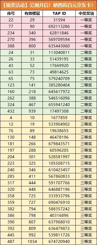 3、本活动禁止刷楼,每个TapID仅可中奖1次,不可重复获得,如对回帖的内容不满意,可点击原楼层进行修改;