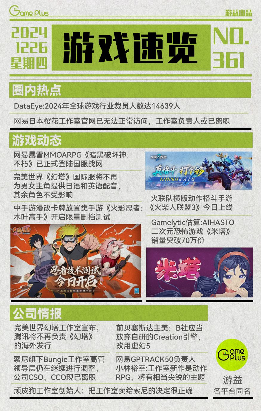 1.DataEye:2024年全球游戏行业裁员人数达14639人