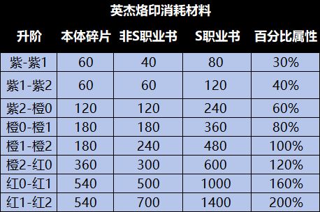 1.14更新S英杰烙印耗材 /装备等级图纸消耗数量