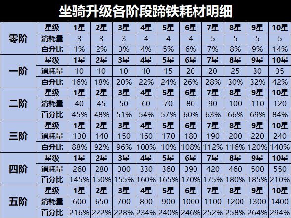 宠物坐骑英杰进阶需求表