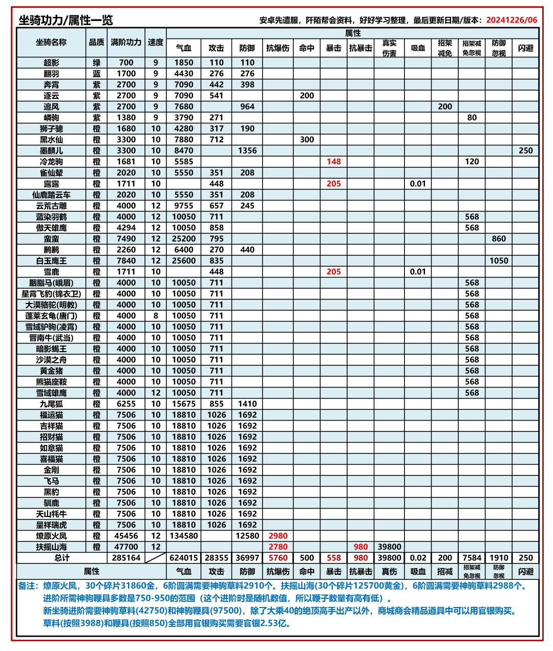 坐骑属性收集图