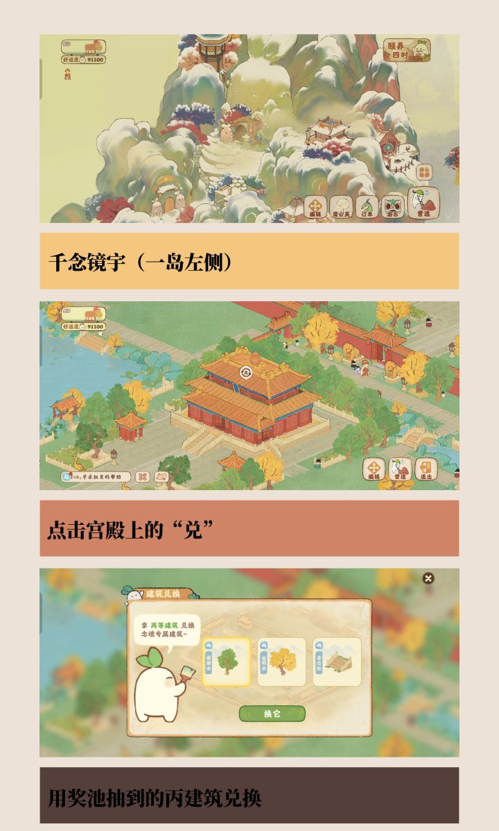 1.念境新增专属建筑兑换功能,消耗奖池内丙级建筑兑换专属丙级建筑「碧烟木」、「金羽木」、「青云阶」