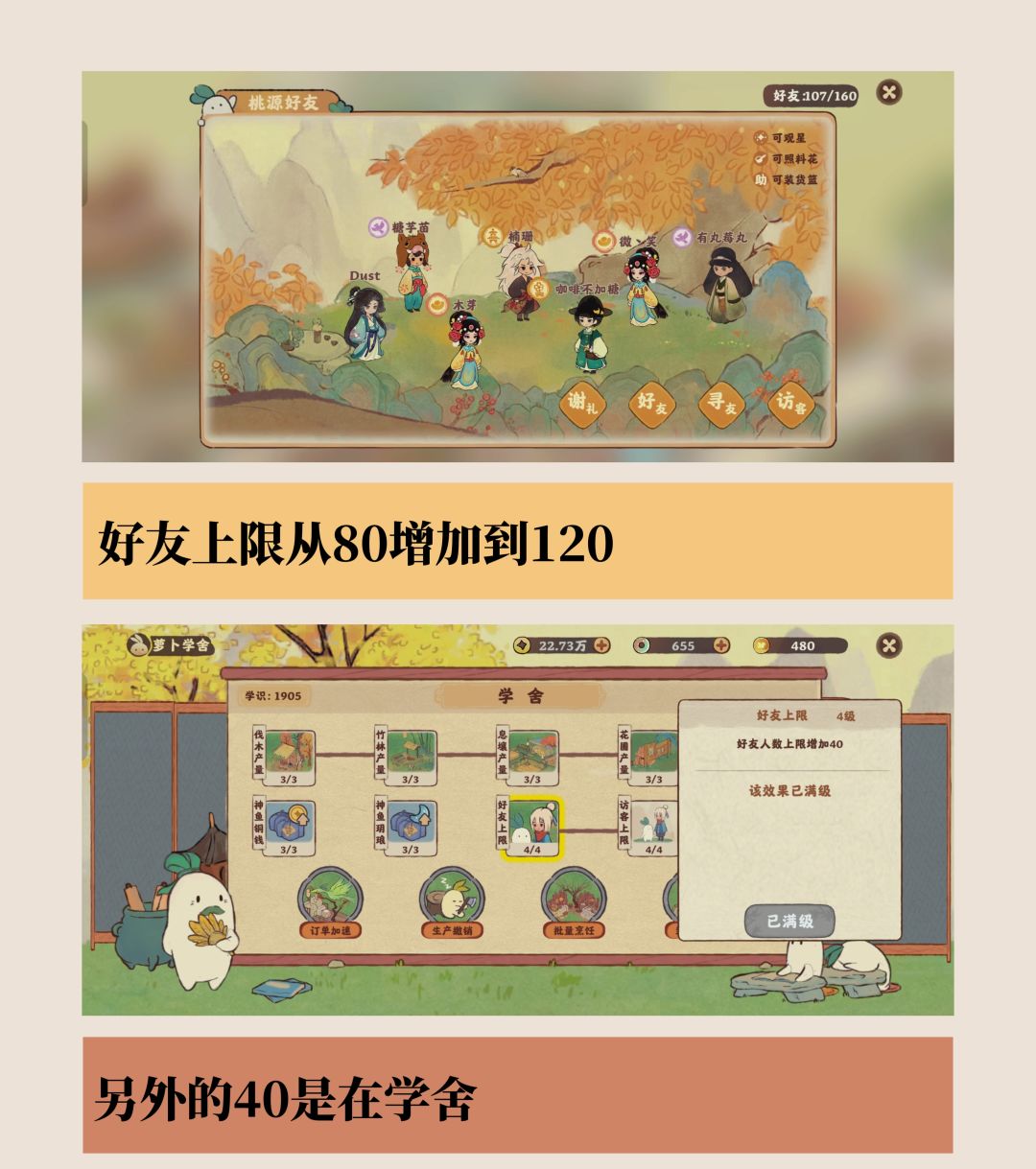 4.好友数量上限由80调整为120,另外学舍还可增加40