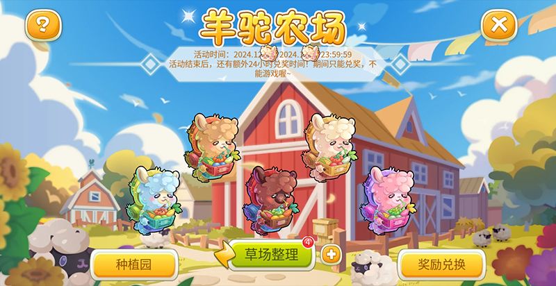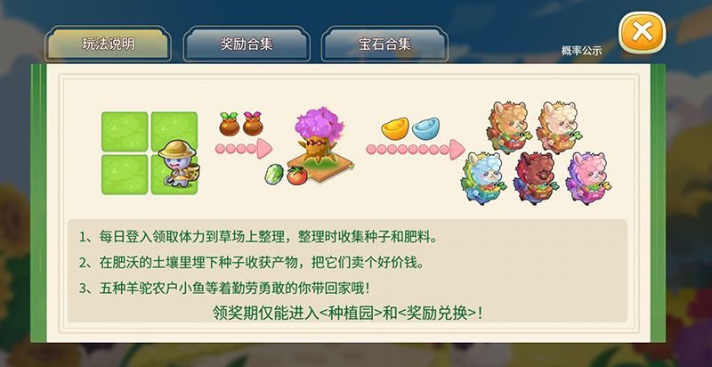 1、本活动分为三部分:草场整理、种植园、奖励兑换;