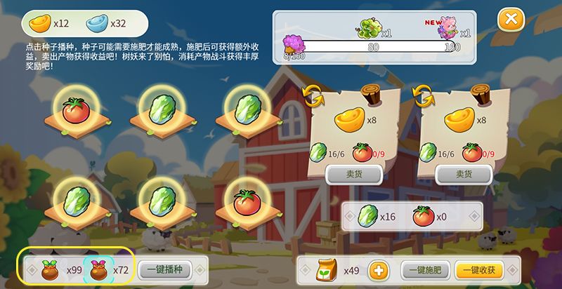 两种不同的种子会产出不同的农作物,可以根据右侧订单的需求进行播种~