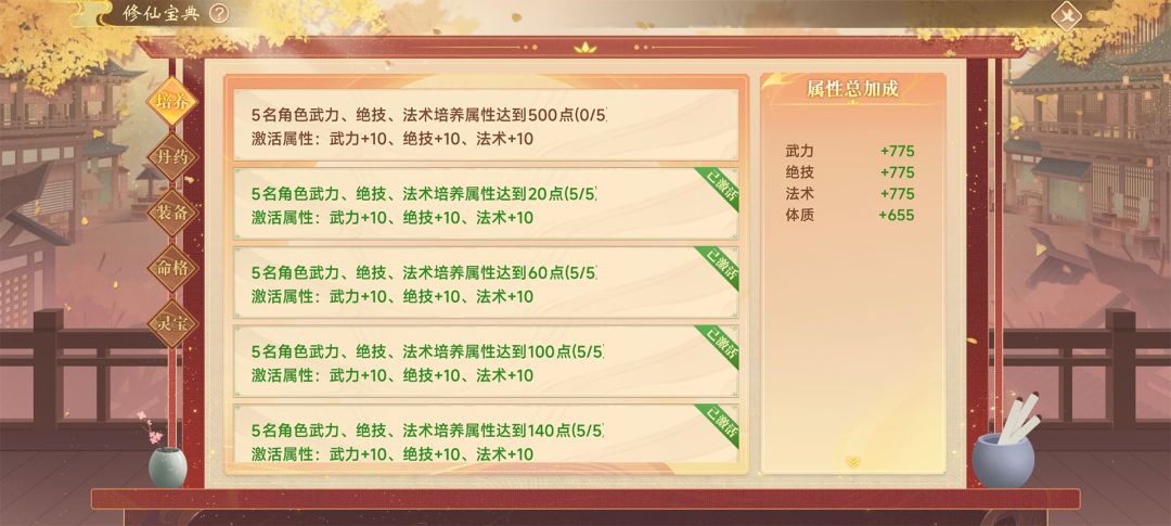 修仙宝典,助力成仙!全新功能「修仙宝典」开启!完成宝典中对应养成任务,即可激活相应属性加成,助力修仙步步登高!开放时间:2024年12月27日更新后