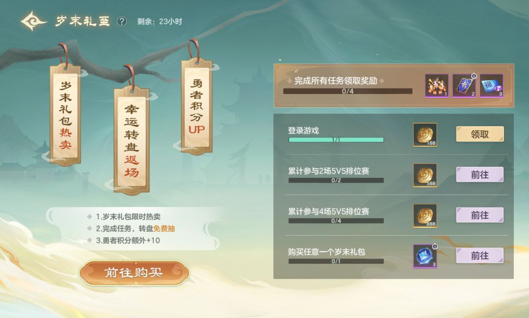 5V5排位赛对局结束后,勇者积分额外+10,完成任务,可获得幸运币、金币;完成全部任务,更可获得直接起飞表情、排位加星卡*2、钻石祈福卡*3