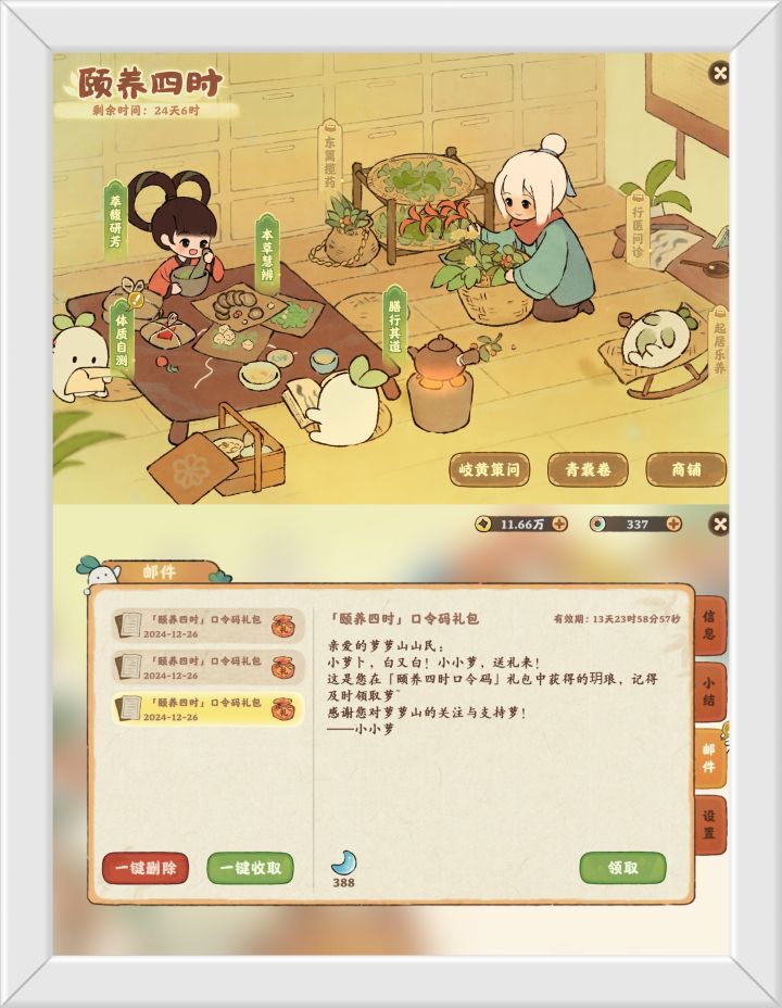兑换码名称: 颐养四时