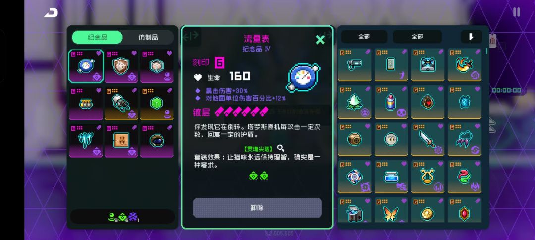 第五关:佩戴三个绿色纪念品,使用紫夜+电刀,保持挥刀频率,利用技能赶路即可。