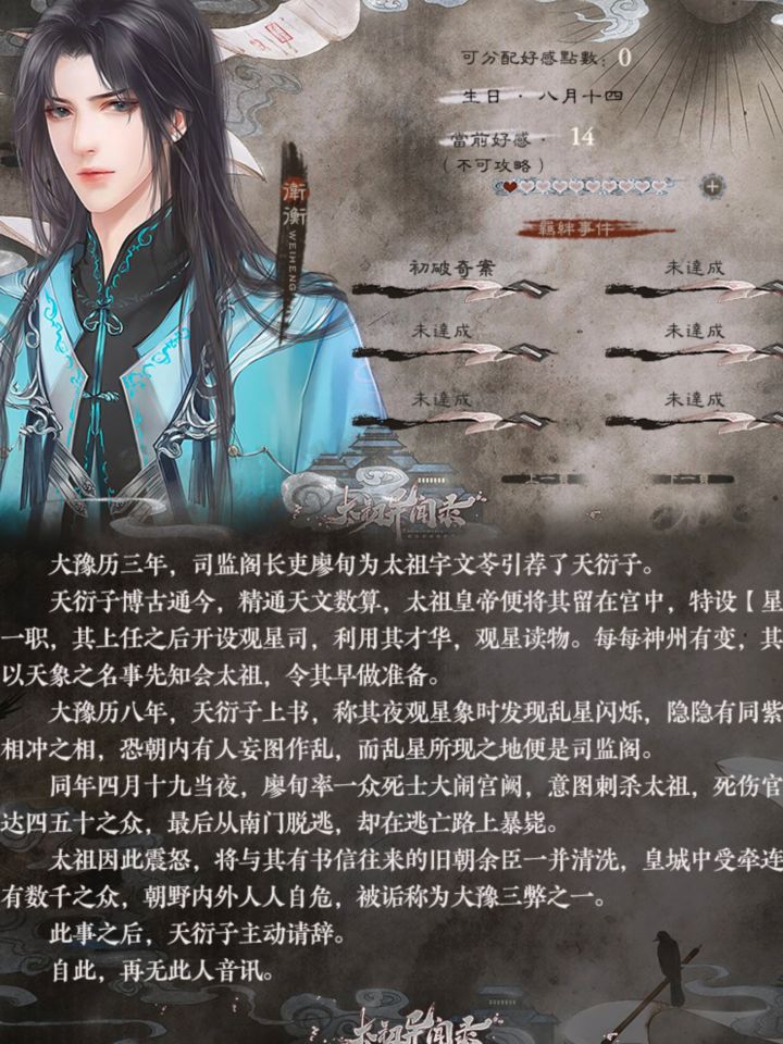 ③陈炫叶:(此为特殊攻略人物,需要达成隐藏条件)聪明奸诈绿狐狸,与女主的对手戏很精彩,聪明人的较量最好看了。总觉得他挺欠打的,经常坑奉卿,卖vip卡的大理寺少卿,劳模担当。