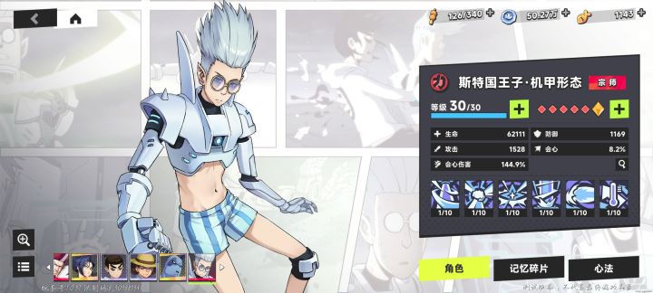 今天是第七天,用时七天通关第十章,个人觉得九,十章一点不难,几乎就是一把过,通关第十章后,也解开了部分玩家一直来的一个小困惑,就是为什么背包有王子战斗形态的材料却一直不见角色的身影呢,在通关第十章后,就会给这个角色啦,属性是“力”大家有多余的牛杂可以先去给预备一下,因为他真的很强!
