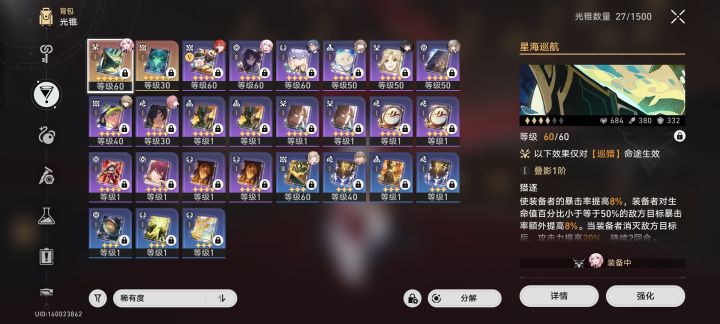 1光锥遗器(没写就是目前没带)参考: