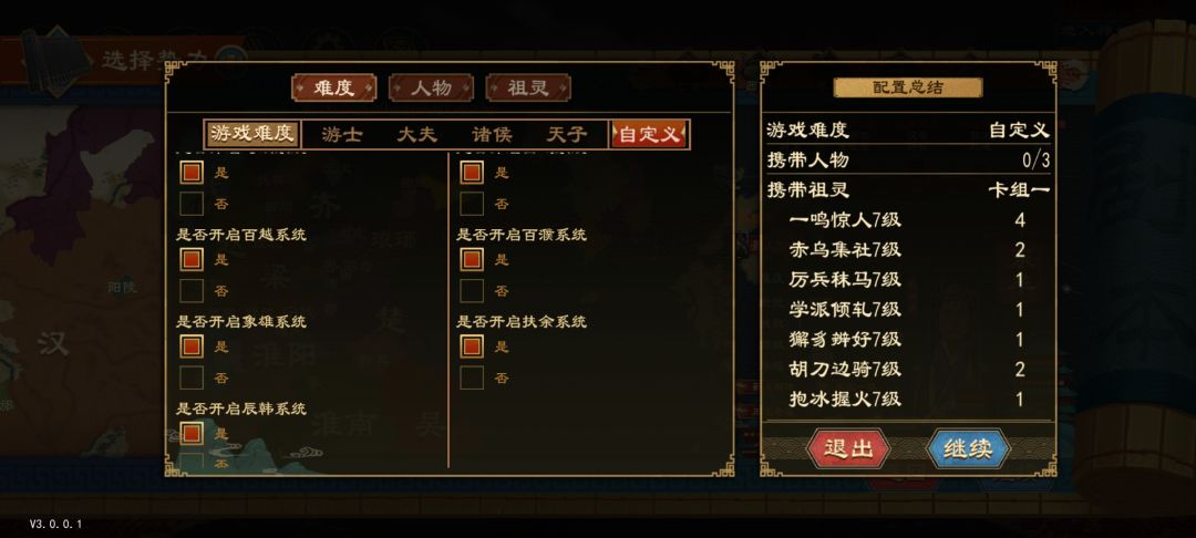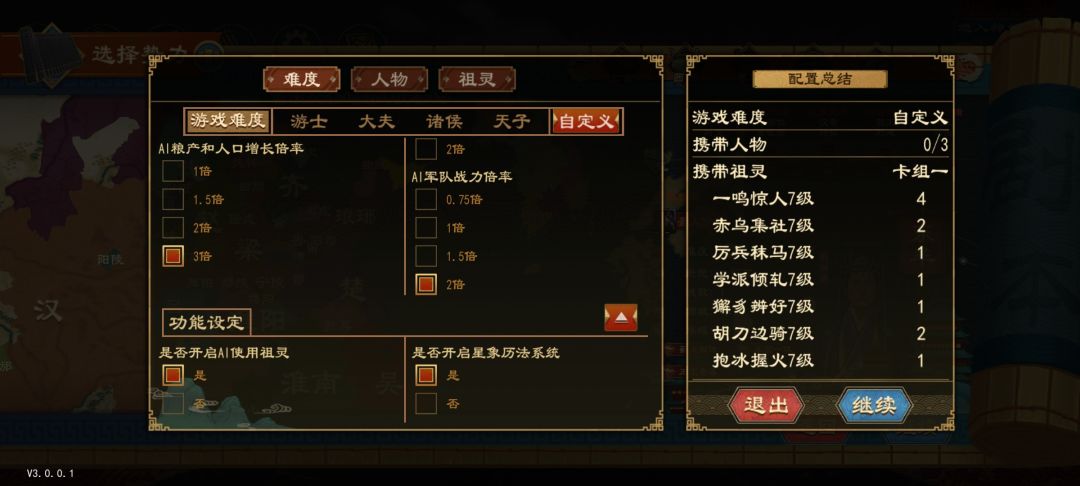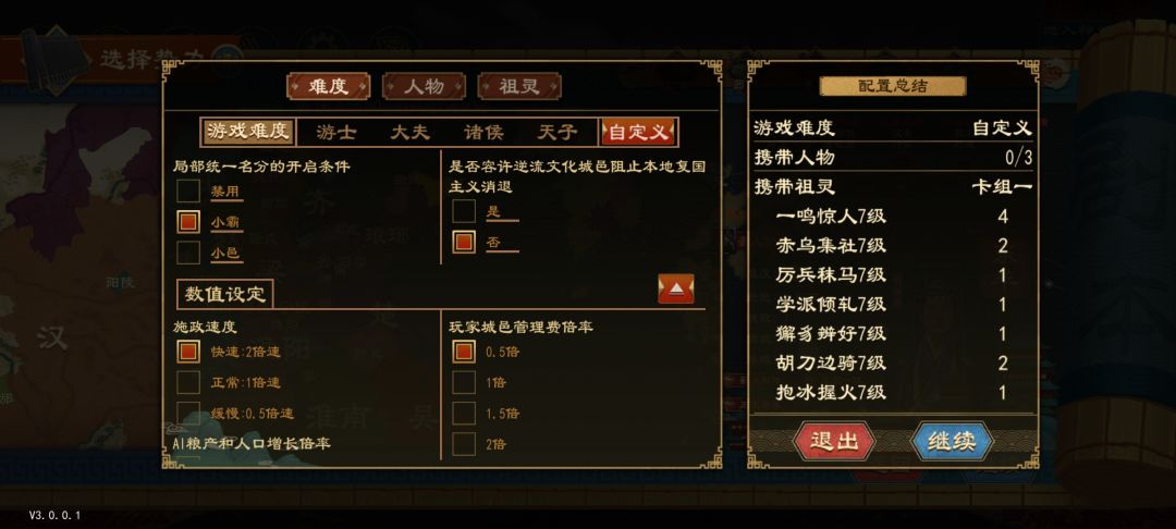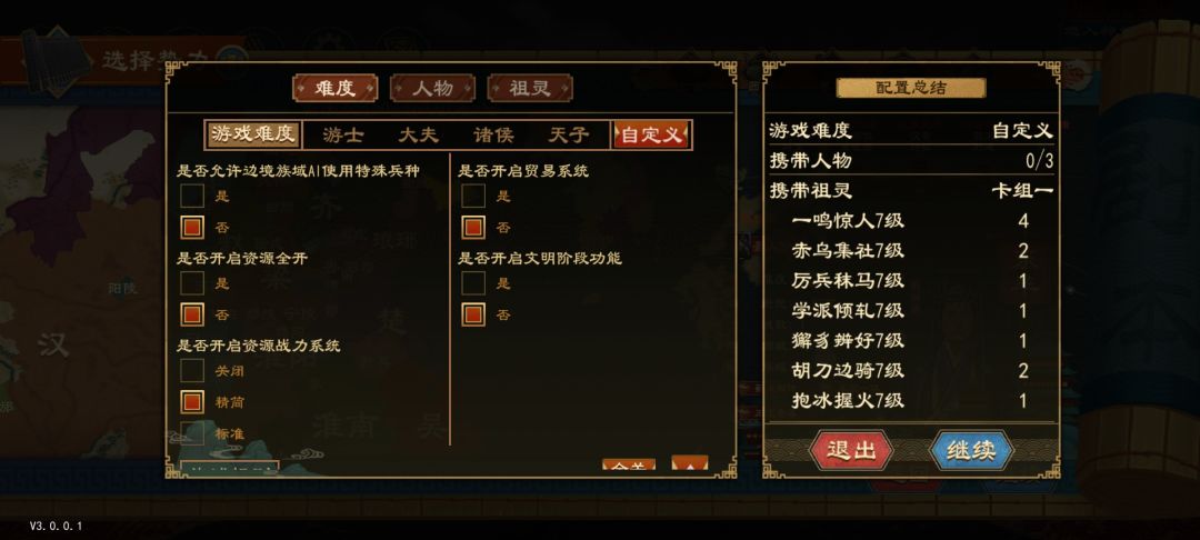 因3.0.0.1版本朝臣授土、建造建筑物、贸易竞争逻辑需优化,请各位君上在开局设置里