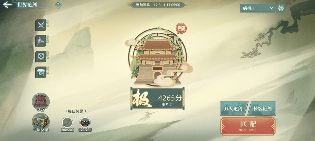 说一下环境和ban位,整个环境可以说是非常利好病机的,病机比较怕的河洛平血机制没了,速推也几乎不见了,最后就剩一个南拳比较难处理了。除了南拳目前的病机几乎是没有天敌了,贪狼,南拳,病机目前的上三宗吧。侠客方面也是,大家几乎都是ban版本侠客,很少还有ban位能去针对ban了,而版本侠客里病机最难处理的四个按顺序是苏轼,耶律弥勒,耶律红新绝和霓裳,刚好够ban3个,霓裳已经没人用了,有时对面还会帮你ban一两个,这个时候还可以把余下的ban位给铁头的梭子薛涛和盾月王维琴师姐这些,现在病机甚至可以明牌bp苏轼和双耶律这三个是最难处理的,对面也不会赌你是病机,因为他还有着凌雪徐焕玉真桃花和尚要ban(乐,都超模就都不超模了)