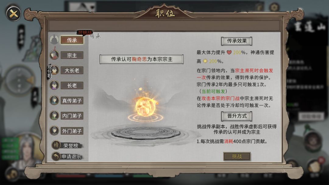 但是大长老之后就没有晋级按钮了,这时候需要等待1-2个月之后才能挑战传承之灵