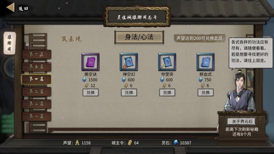 结晶准备工作完成之后回家突破(结晶丹上一期已经让大家在门派聚宝仙楼买了),这时候你应该已经晋级至大长老了