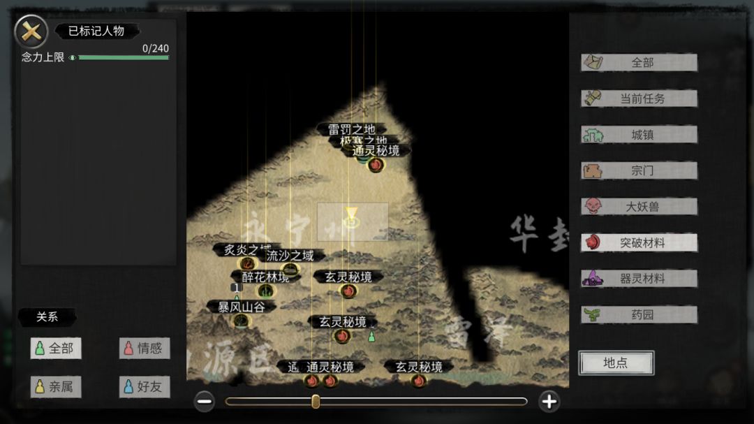 在等待晋级的过程中我们可以把结晶期的准备工作先做了,首先先打三个玄灵秘境,点开地图点击突破材料那一栏会显示出来所在地