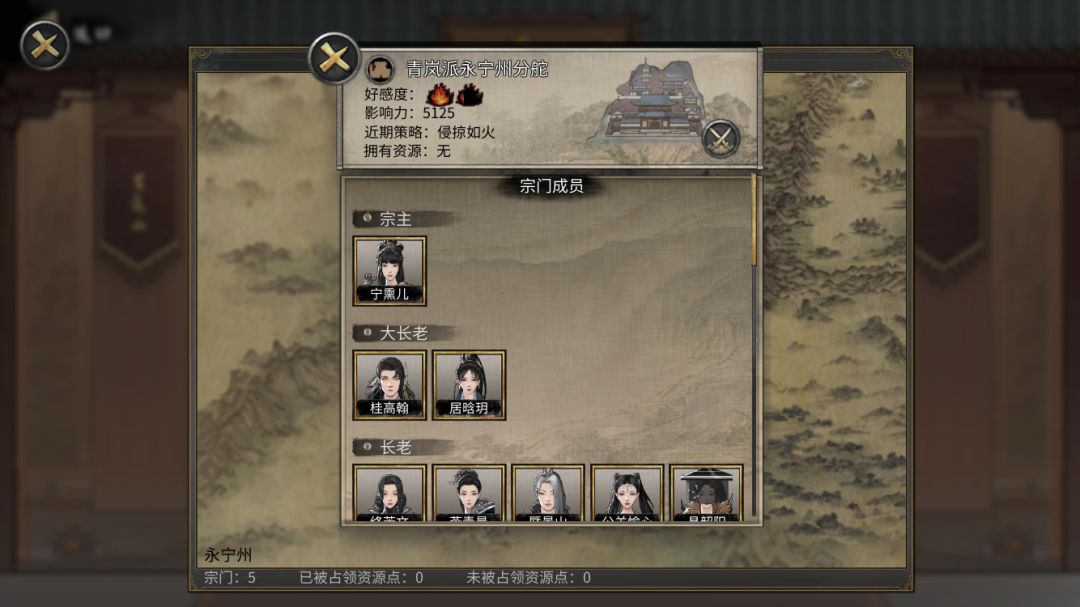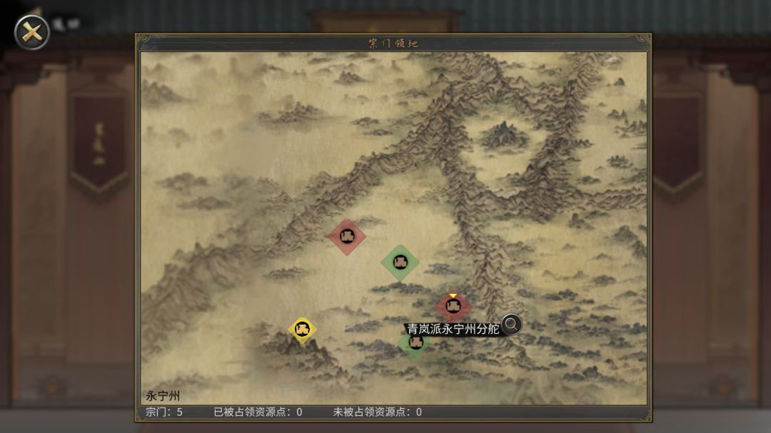 接下来点开议事大厅的宗门领地,然后点击一个门派(你可以提前先去那个门派侦查一下是不是你要练的功法)