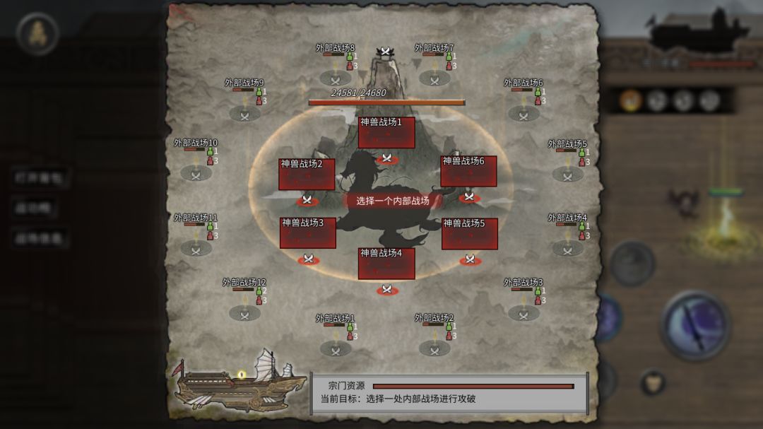 进攻时,你可以去神兽战场1直接攻击神兽(此时你拥有炼狱当康宝宝加结晶修为打他简简单单),把神兽干掉之后跟对面宗主单挑打赢就拿下了