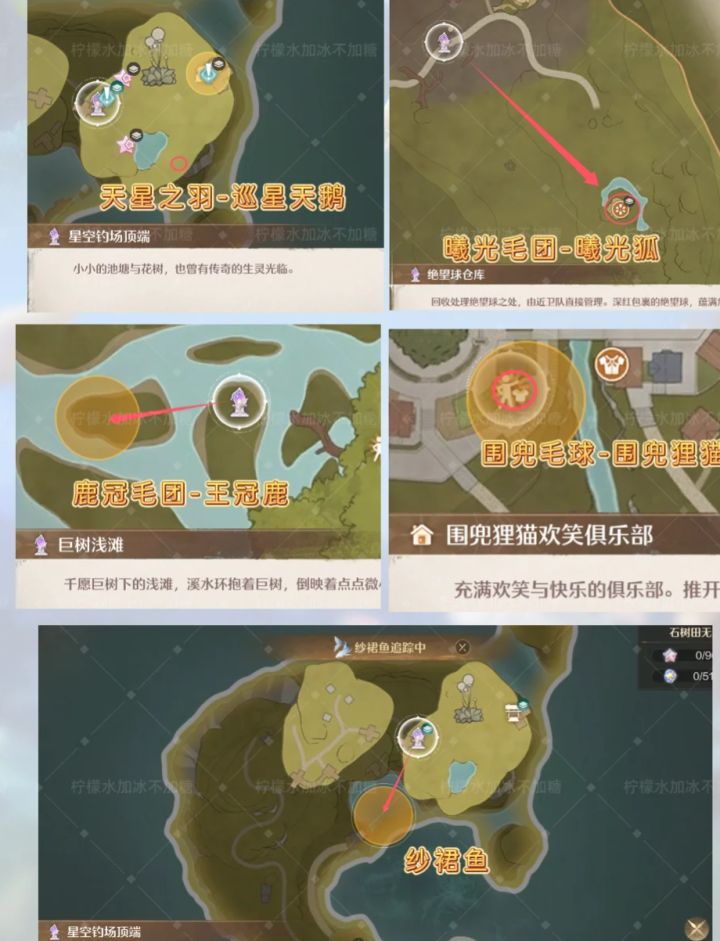 目前鱼类追踪不准大家注意下,会出现大世界有但是追踪不到,且没有精准追踪的情况,所以表内鱼类数量进行删除,只保留紫色鱼。