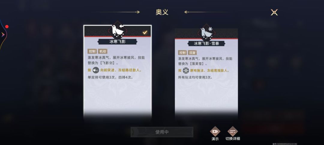 激发寒冰真气,展开冰寒披风,技能替换为【飞影剑】。